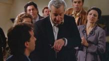 George's father gets him an interview as a bra salesman. Evidence points to Jerry's accountant being a drug user. So Jerry, Kramer and Newman set out to find out the truth. Elaine's new boyfriend is perfect except for his use of an exclamation point.