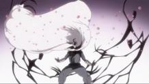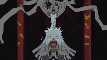 As Maka continues to make her way towards the shrine, the newly revived Ashura gets himself adjusted into his skin. After opening his eyes and seeing Eruka in front of him, he terrorizes her with a scream before moving on. Black*Star wants Tsubaki to enter youtou (phantom blade) mode, and when she refuses because of his injuries, he decides to take on Ashura without her. He attempts to use his Big Wave attack, but Ashura isn’t fazed at all and knocks him out with a single flick of the hand. He knocks out Kid in a similar fashion by stretching out his skin like a rubber band and hitting Kid’s head with it. Ashura follows that up by using his skin as a wrapping and covering himself with it, effectively creating himself a set of clothes. He then jumps through the ceiling of the shrine and towards the surface. Maka arrives at this moment and manages to catch him by grabbing onto his skin, but when Ashura emerges above ground in the middle of Death City, she gets thrown off.