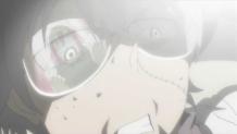 While everything else is going on, Justin and Giriko are having a private battle in the snow. After getting a little beat up, Giriko decides to run and distracts Justin with snow copies of himself. Meanwhile, the Mizune sisters report their success back to Eruka outside the magnetic field. Inside the field, the demon inside Soul is urging him to start playing the piano, and when Soul finally does, everyone can immediately feel the effects. The resonance link allows Maka, Black*Star, and Kid unprecedented coordination, and Mosquito barely has time to defend himself. Soul then directs each of the three to use their strongest attacks in succession, and Black*Star and Kid cause Mosquito to lose his arms. When it’s finally Maka’s turn, she transforms Soul into a form that surpasses the Majou Gari (lit. witch hunter): the Majin Gari (lit. demon hunter). This easily slices through Mosquito, but unfortunately, Mosquito detaches his head and escapes before the rest of his body explodes.