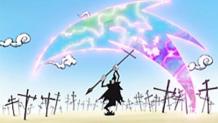 While Tsubaki confronts Masamune inside the demon blade, Black Star gets himself beaten by the villagers, but he refuses to fight back or leave her side. Masamune states that Tsubaki is not fighting him seriously and that he always hated her passive behavior. He also claims that the fact of her inheriting their family's techniques and not him, was what led him to become a Demon God candidate. Just when Tsubaki was about to be absorbed her brother, Black Star's voice reaches her, and she gains the will to defeat him, absorbing her very first soul in the process. Back at Shibusen, Black Star shows to the rest of the gang Tsubaki's new form she obtained after defeating her brother, the form of a blade, but he ends up fainting as his powers are not strong enough to handle it yet.