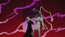 As Mifune fights with Black Star, he counts how his father was strong, but chose the wrong path and he was forced to kill him, and he asks his opponent if he's going to choose the path of the warrior or the path of a demon. Meanwhile it is revealed that the key to operate Brew is the soul of Eibon itself, who happens to be one of eight warriors of Shinigami, and who his willing to cooperate to deal with Asura. Arachne decides to leave her organization behind by putting into operation several weapons that the Baba Yaga's castle had prepared. Returning to the battle, Black Star refuses even to listen to Mifune, who, seeing no possibility of change for his opponent decides to finish it in one fell swoop, killing Black Star. Eibon finally put Brew function to work: make real the most desperate desire of one's heart.