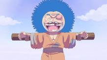 Usopp finds Kin’emon’s upper body and the heavily wounded Kiku. However, they are surrounded by the Gifters and can’t find a way out. Seeing the samurai giving up hope, Usopp remembers his determination.