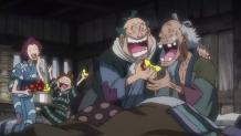 The people of the Flower Capital get flustered when Kin’emon and the other Akazaya samurai who were supposed to be dead appear from the smoke. However, the last one who walks out of the smoke, and what he says, confuses the people even more.