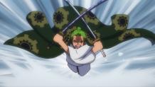 Zoro is facing a hard fight against King who seems invincible. Even one of Zoro’s deadliest attacks doesn’t leave a scratch on him. On top of that, one of Zoro’s swords goes out of control and gets in his way.