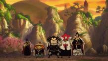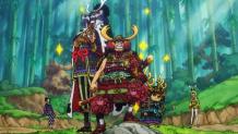 As the Navy Admiral Ryokugyu comes to strike the Flower Capital, the Akazaya samurai notice and try to stop him, but his Woods-Woods Fruit power overwhelms them. Meanwhile, another formidable, yet friendly, guest approaches the Land of Wano