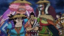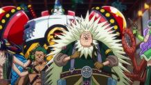 Facing Holdem who is holding Otama as hostage, Luffy prepares for a fight but Okiku tries to stop him by sharing who is really ruling the region. Meanwhile, Basil Hawkins who is also working for Kaido and chasing after Luffy, is confronted by a mysterious figure.