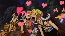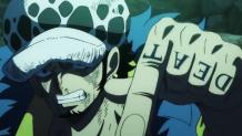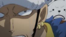 Taking down Holdem, Luffy rescues Otama and tries to catch up to Zoro and Okiku who stole the food treasure ship and started a mad dash to get out of the town! Meanwhile, Trafalgar Law’s attempt to silence Basil Hawkins fails when he hears bad news about his alliance.