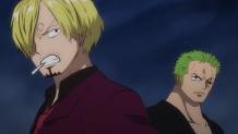 Sanji still wonders what is happening to his body as he receives attacks. Meanwhile, the dying Kin’emon hears an unexpected voice calling for the also dying Kanjuro. Through the Smail, the voice of Orochi tries to stir up Kanjuro to make him perform one last time.