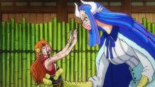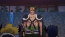 Luffy challenges Urashima, the strongest yokozuna in the Land of Wano, to a sumo match! Urashima even uses illegal moves to beat Luffy at any cost! Meanwhile, Holdem tells Otama that he knows she committed a crime and he has to punish her for it.