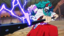 Kin’emon tells Luffy and the others about how Kozuki Oden made Kuri into a peaceful region and became its Daimyo. However, he was set up by Kaido and Kurozumi Orochi and executed. Kin’emon and his fellow vassals ran to Oden Castle in flames to save Oden’s wife Toki and children but Toki told him a shocking truth.
