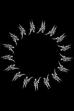 Six people are grouped in front of a wall as if for a photograph. The entire ceremony is supervised by a seventh person, who, like a photographer, looks at the group from different angles and rearranges the group by hand-signals.