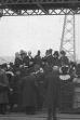 Poor pedestrian, horse drawn carts, wagons and bus travel across bridge at Sunderland, Tyne and Wear.