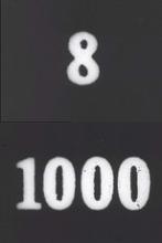 Prestype on clear film measuring tape, 10ft. length. No camera. At the end of every foot of film numbers appear, 1, 2, etc to 10