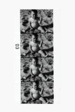 "Single Frame sequences of TV or film images, with periodic distortions of the image. The images are airplanes, women men interspersed with pictures of texts like: 'silence, genius at work' and 'ich liebe dich.' The end credit is 'Television décollage, Cologne, 1963."