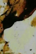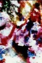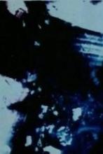 Pale petal and stem-like shapes counter punted rhythmically by an even paler "background" of truly ephemeral of truly ephemeral (almost invisible) shapes. Again, the foreground movement is clockwise and often "ribbed" as the film darkens into a blend of foreground/background and, eventually, a meld as of white hardened clots fretted by glyphs.