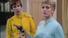 Carol's into practically everything tonight. She's a sexy Hollywood star one moment, a drab spinster who loses her date to roommate Michele Lee in the next. She's handcuffed to a Southern Sheriff in a sketch that's interrupted by outer-space visitor Flip Wilson. She tries the housewife routine again talking to her neighbor in the next window. Michele dances and sings with Carol and Vicki Lawrence. Flip Wilson slips in a monologue.