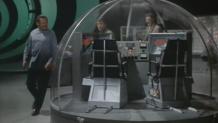 The guys' signal is intercepted and a silver-skinned alien shows up and kidnaps Anne. He leaves behind a data card which the rest of the Project staff use to send Tony and Doug to. The guys end up in a futuristic complex and meet a zombiefied ancients from different time periods and locales. A mysterious voice provides historical detail. According to the Project staff they're on a distant planet in the Canopis system in 8433 A.D. The guys meet the Curator then escape. They get hold of Ann before being captured and the Project staff try a recovery but grab a OTT (Official Time Traveller) instead. He grabs the Time Tunnel's time/space converter and leaves. The guys and Ann stage an escape but mess that up as well. The Canopians go dormant during night, and the guys avoid being drugged to take advantage of the situation. They get nowhere for a while, and the OTT is not vulnerable to lack of sunlight. The three Earthlings manage to overcome it long enough to send Ann back with the convert