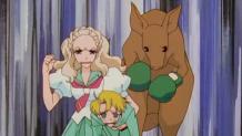 Utena unintentionally unleashed the Power of Dios in the last Duel with Saionji, which attracted Touga's interest in her. Touga sends Utena a dress for the upcoming ball. On the other hand, Touga's sister, Nanami, thinks her brother likes Anthy, and in a fit of jealousy, she sends Anthy a water-dissolvable dress.