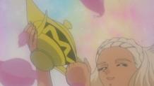 In this episode, we review episodes 1 through 12 with Ohtori Akio's monologue (In the next episode, we will learn he is Anthy's brother). When he appears in the Arena, the midair castle falls down. Akio talks to Dios sleeping in the castle. He calls each of Utena's duels as follows: 1. friendship (amitie); 2. choice (choix); 3. reason (raison); 4. love (amour); 5. adoration (adoration); 6. conviction (conviction); 7. self (soi). Akio says Utena might be the one they (Akio and Dios?) have been looking for. At this rate, she could reach to the duel called "revolution" and Dios could be released.