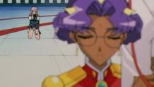 Utena was defeated. But the real shock for her was not the fact that she was defeated, but the fact that from Touga's explanation, she learned that Anthy was just playing the role of the bride around Utena, which means Anthy pretended she wanted to quite the bride, become an ordinary girl, and make many friends, *because* Utena, or the Victor of the Duel, so wished. Utena now loses herself. Wakaba, although she knows nothing about what's going on with Utena, she tries to cheer her up. Gradually, Utena gets back to herself. Utena goes to the rose garden to see Touga. Touga thinks she's come to accept his date offer. However, she challenges him to a duel.