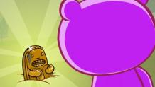 That Nutty just can't resist a sweet treat! Luckily Cuddles is smooth on the skateboard and out-maneuvers Nutty at every turn. His last trick is a head-roller!
