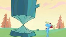 Lumpy the magician does the saw someone in half trick on Cuddles and gets him sliced.