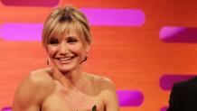 Together on the sofa are Hollywood star Cameron Diaz, comedian Sarah Millican and singer Rod Stewart, who also performs When You Wish Upon a Star.