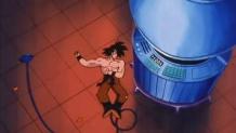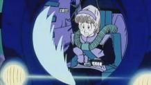 Bulma screams to be let down, and reminisces on her troublesome life. She bites the soldier holding her, and she drops him. They catch her and land in a clearing. Bulma tries to escape but her efforts are fruitless. She eavesdrops on their conversation and finds out that they don't know about the Dragon Balls, so she explains to them how the wish could make them stronger than even Frieza. They like the idea of boundless strength and insist that she show them where the other balls are. In Space, Goku uses to Kaio-ken to form a energy ball and throws it into the gravitational pull of the gravity machine, causing it to cycle around the room. Goku then gathers energy for a Kamehameha and fires it at the other energy ball. Instead of them connecting, they overlap and hit Goku, one on the back and one on the chest. He endures the hit as if it were nothing.