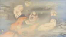 Goku finally emerges out of the Space pod and tries to detect the life force of both Krillin and Gohan. Goku finds it very difficult because their powers are deceased. After Goku finds them he takes to the sky and is there in an instant.