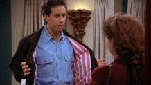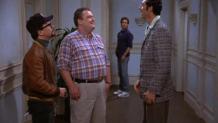 Jerry buys a real expensive new suede jacket with a colorful inner lining. George has a song from Les Miserables that he just can't get out of his mind. Kramer is supposed pickup a magician friend's doves, and needs someone to help him for two minutes; Elaine takes on the job. Kramer promises she'll get "a lift" to the hotel where Jerry and George are meeting her and her father, Alton Benes, an author cut from Hemingway cloth. Jerry and George suffer while waiting with Elaine's father. When it begins to snow, Jerry turns his new jacket inside out, to protect it, but Alton Benes doesn't want to be seen on the street with him.