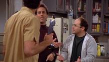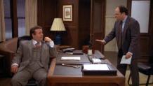 George quits his job in a huff after he is demoted to using the regular bathroom. Newman tells Kramer that he plans to jump off the building. Jerry suggests that George just go back into work next Monday morning and pretend like nothing happened; however, that doesn't work. Newman jumps, from the second floor. George plots revenge, and with Elaine's help, tries to slip his boss "a Mickey." Jerry suspects that his launderer is a larcenist after he discovers that $1500 he had stashed in his laundry bag is missing. Kramer helps Jerry get revenge by bringing a bag of concrete in to put into one of the wash machines.