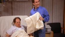 George thinks he's had a heart attack. The doctor tells him otherwise, but he might want to get his tonsils and adenoids removed. Elaine is interested in the doctor and he is interested in her tongue. George not wanting to deal with the cost, follows Kramer's suggestion of going to a holistic healer. The healer's cure turns George purple and the ride to the hospital is delayed over a Chuckle.