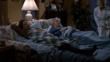 Frasier is upset when he hears that Lilith now officially want s a divorce. The staff at Cheers decide to hold a "happy divorce" party to cheer him up, and at the party, whilst Woody drinks too much and becomes a mean drunk, Frasier gets drunk. Afterwards Rebecca drives him home, but they end up in bed together. However, first the gang pop around to check Frasier is OK - and to watch "The 3 Stooges" - but just when they leave, who should show up but Lilith, who has escaped from the eco-pod...