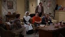 The gang gathers at Carla's house for a Thanksgiving dinner of frozen turkey and overdone peas.