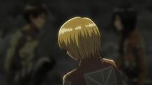 Armin tries to cope with the loss of his friends and allies after Titans massacre his squad. Elsewhere in the city, Mikasa manages to take out several of the monsters, which brings back tragic memories of her past and the first time she met Eren.