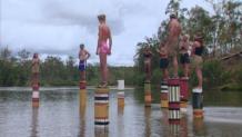 The Ogakor and Kucha tribes merge to form Barramundi and then set up camp in a new location. The Immunity Challenge, “Perch,” requires endurance as the players must stand on a wooden pillar in the river. The last person standing wins Individual Immunity.