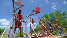 A twist at the Immunity Challenge creates a two-way race for security in the game, and one castaway uses his entire body as a bridge during a Reward Challenge. Also, a crazy Tribal Council becomes confrontational.