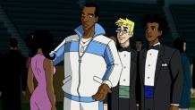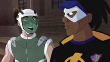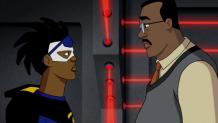 Virgil's dad, Robert, buys VIP tickets to the NBA All-Star game in L.A. after gathering money from doing a charity drive. Virgil and Richie walk into one of the courts where they find Karl Malone, Yao Ming, Tracy McGrady, and Steve Nash playing some ball. Just as they're introducing themselves to the popular NBA stars, chaos commences. All the plastic in the court starts to disintegrate. Static and Gear fly outside to see what's going on, and find that all the cars in the city have stopped because all their tires disintegrated. Gear learns that nanites have been doings this, and he leads Static to where this is all starting. Farther away, they find a gigantic robot tearing up the city. After not being able to stop the robot with their own powers, four superheroes in different colored costumes fly into play to help Static and Gear. A little later after the fight, the robot disappears, taking Gear with him. The new superheroes reveal their identities to Static. To Static's surprise, they