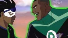 Green Lantern (GL) goes on a crime spree, and Virgil is disappointed that one of his heroes has turned bad. While on patrol, Static and Gear run into GL and try to talk to him. When that doesn't work, they try to capture him but fail. The real GL appears in Dakota to stop the fake, who is Sinestro in disguise. Sinestro wants to ruin GL's reputation on Earth. Static and Gear manage to capture the real GL and send him to prison. Sinestro searches for GL's power ring, but GL hid it on Static and Sinestro goes looking for him. When Static finds the ring, he talks to GL and learns the truth. Static powers GL's ring so he can defeat Sinestro.