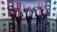 Celebrities pay tribute to President Trump, including Will Arnett, Alyssa Milano, Fred Willard, Jake Johnson, Fred Armisen, and Anthony Atamanuik.