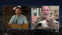 Guest host Sebastian Maniscalco welcomes Kelly Ripa, Ryan Seacrest, and J.J. Watt.