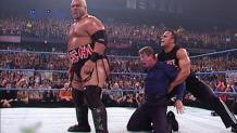 As "Stone Cold" Steve Austin's association with The Alliance makes him ineligible for a rematch against Kurt Angle for the WWE Championship, Shane McMahon orchestrates a plan to get The Rattlesnake another chance. Chris Jericho & WCW Champion The Rock team up with WWE Referee Mike Chioda to take on The Dudley Boyz & Alliance Referee Nick Patrick.