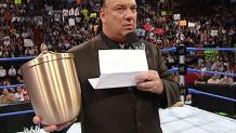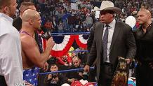 After Paul Heyman's unexpected departure from WWE, Kurt Angle assumes the role of SmackDown General Manager. With the Olympic Gold Medalist already shaking things up by trading Triple H back to Raw, he turns his attention to giving SmackDown's newest acquisition a WWE Championship opportunity against Eddie Guerrero in the main event.