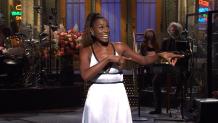 Sketches include: Braxton High School Prom Red Carpet, The Last Dance: Missing Scene, The Muppet Show, Gene's Sad Birthday, Weekend Update, George Gershwin Tribute, Hold Your Applause