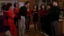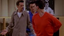Ross is suspicious about Rachel's possible job offer from a good-looking stranger.  And a drunken Chandler fools around with one of Joey's sisters, but can't remember which one.