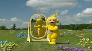 The Teletubbies watch a video about children getting new clothes. Later, a mirror magically appears in Teletubbyland, Dipsy and Laa-Laa take turns looking at their reflections but Tinky-Winky is too tall.