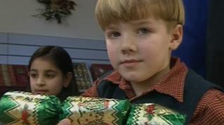 The Teletubbies watch some kids celebrate Christmas. Afer watching the video the Teletubbies decorate their house.