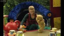 The Teletubbies watch two boys having their hair cut. A mirror appears in Teletubbyland. Laa-Laa, Dipsy and Tinky Winky like looking at their reflection in the mirror. Po liked looking at her reflection in the mirror, but not as much as she liked to ride her scooter. The Tap Dancing Teddy Bear appears also in his gazebo. Afterwards, the Magic Windmill stops spinning and it is time for Tubby Bye Bye.