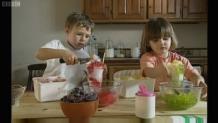 The Teletubbies are trying to eat their Tubby Toast but the Noo Noo is being too noisy zooming around the House. The Teletubbies watch Yvette and her brother Leslie making salad. Back in Teletubbyland the Teletubbies try to have their Tubby Custard but they all keep falling over.Then they run outside to do the Falling Down Dance before Tubby Bye-Bye.
