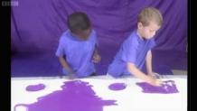 Children look for all things purple after a voice trumpet announces the majestic color.
